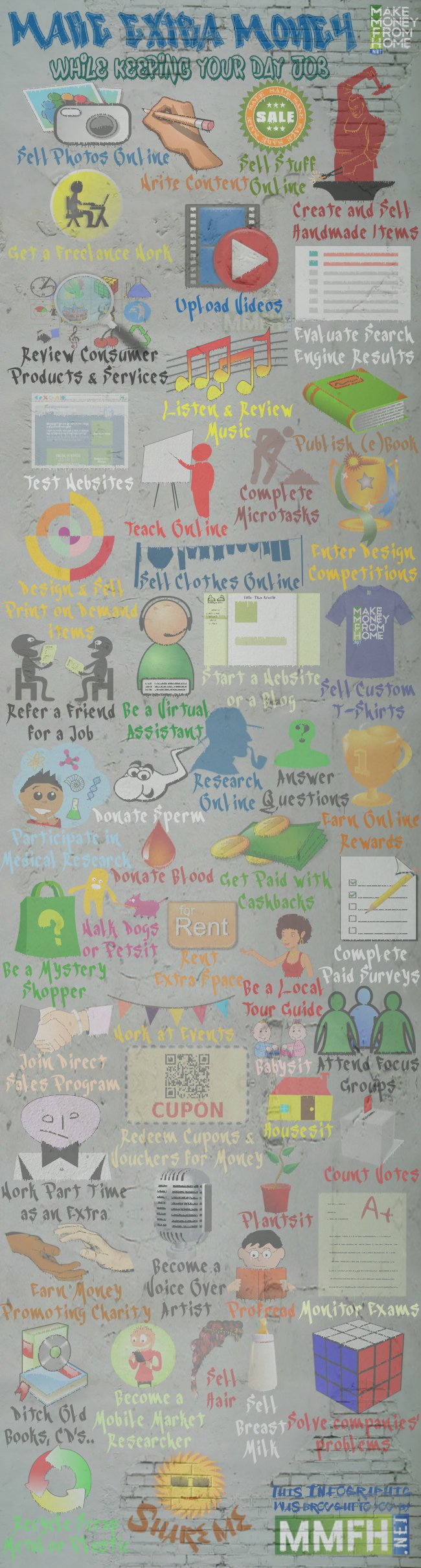 Have you ever wondered if there is a way to make extra money while keeping your full time employment? You have come to the right place, we proudly present our exclusive informational graphic illustrated in graffiti style.